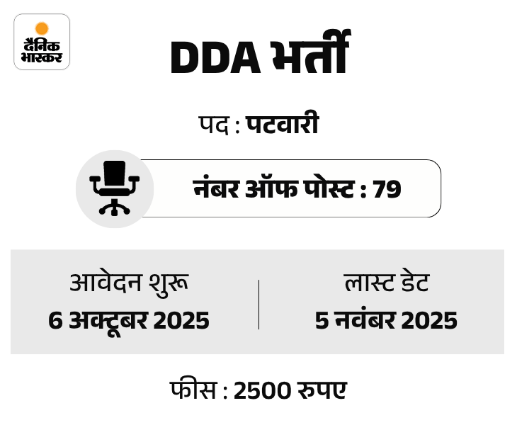- DDA recruits 79 patwari posts; Applications Open October 6, Salary Up to 70,000