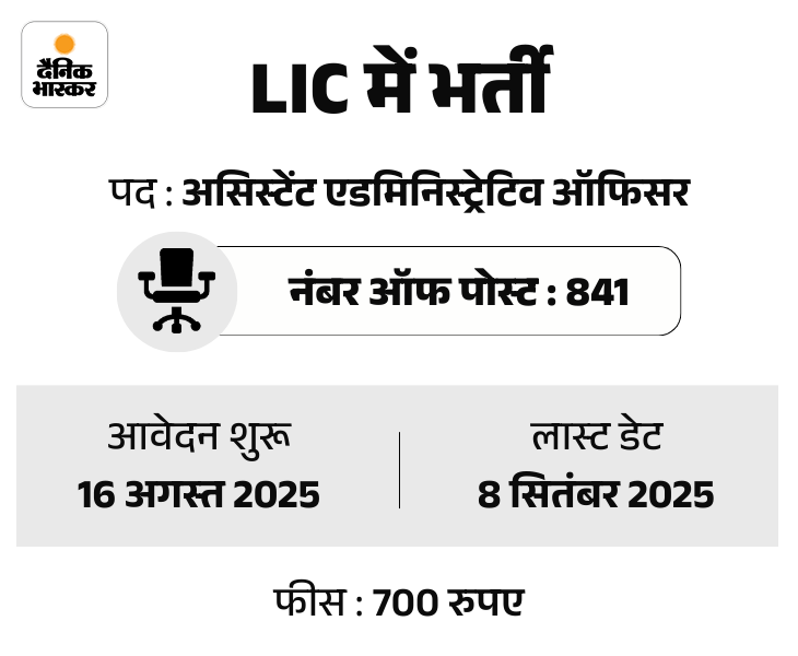 - The last date for application for recruitment to 841 posts in LIC is Near, candidates should apply by 8 september