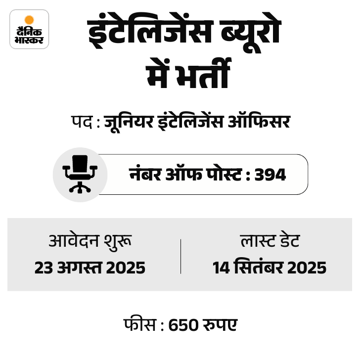 - Today is the last day to apply for recruitment to 394 posts in intelligence bureau, salary is more than 81 thought