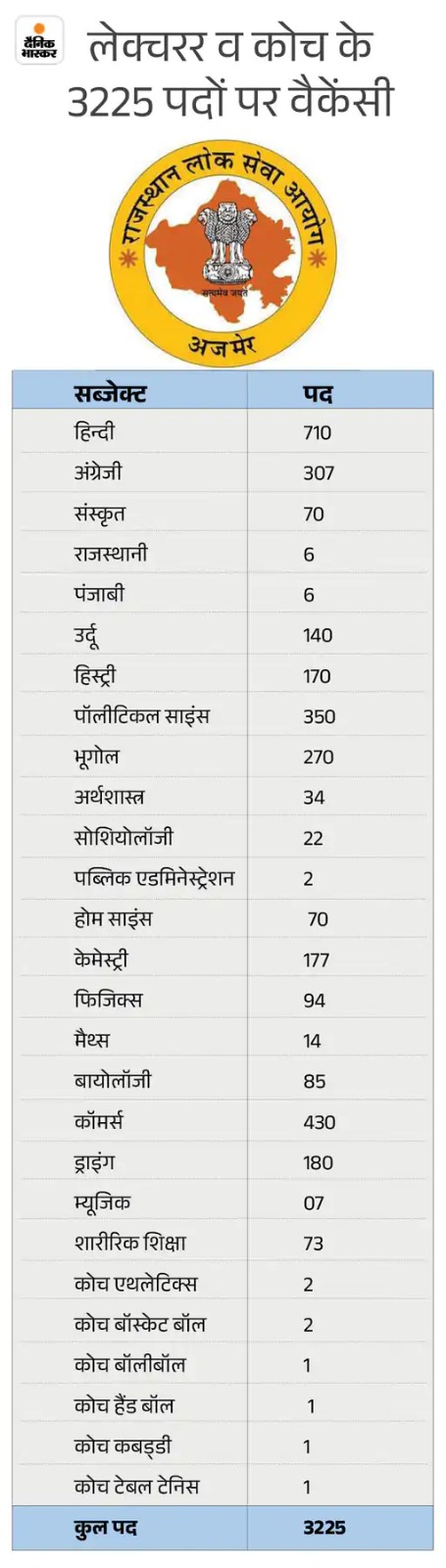 - Hindi, English, Sanskrit, Rajasthani, Punjabi, Urdu, History, Political Science, Geography, Economics, Sociology, Home Science, Chemistry, Physics, Maths, Biology, Commerce, Drawing, Music, Physical Education were recruited in the year 2024, under which the basis of age of age was placed by the Commission. Therefore, additional relaxation in the maximum age limit on these posts will not be payable.